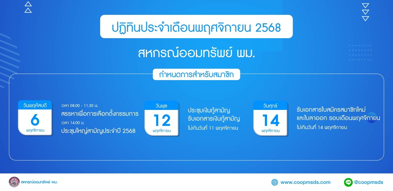 | ประกาศผลการเลือกตั้งกรรมการดำเนินการสหกรณ์ออมทรัพย์ฯ พม. ประจำปี 2569 ประกาศเมื่อวันศุกร์ที่ 7 พฤศจิกายน พ.ศ.2568 |