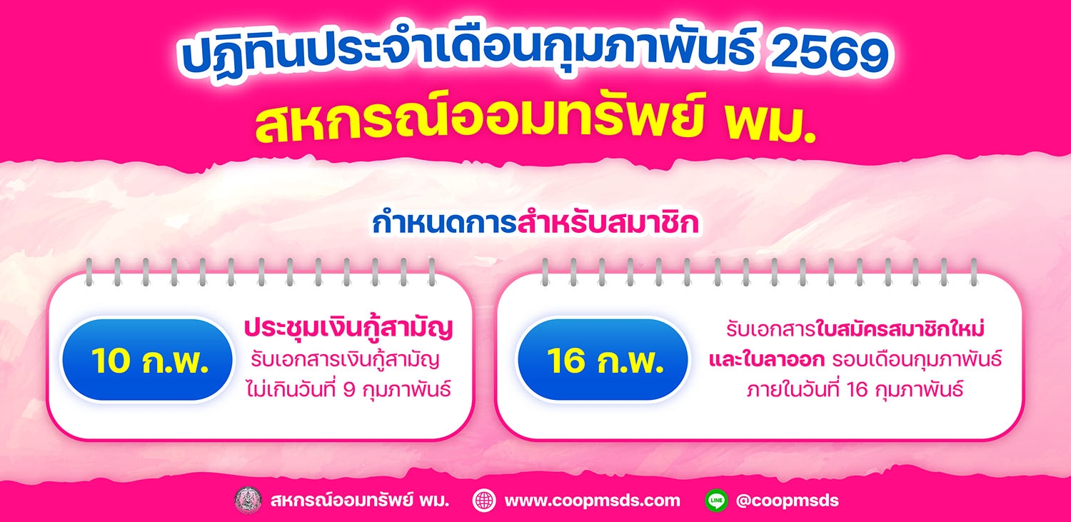 ประกาศวันหยุดสหกรณ์ฯ พม. ปี2569